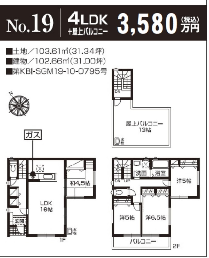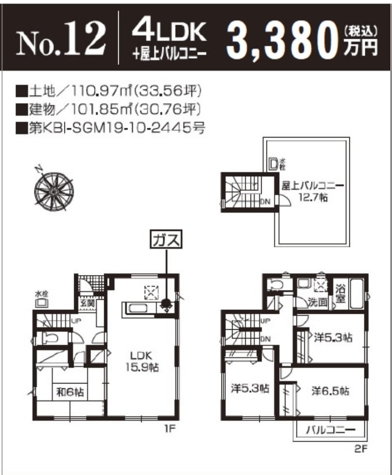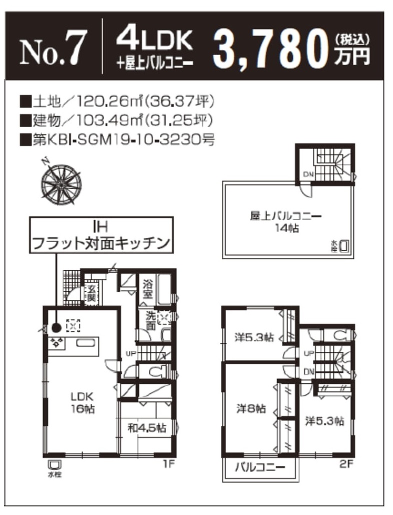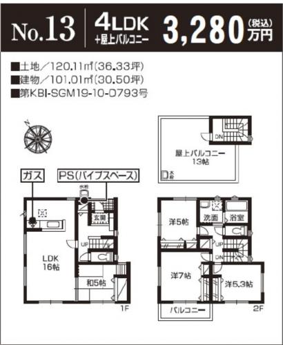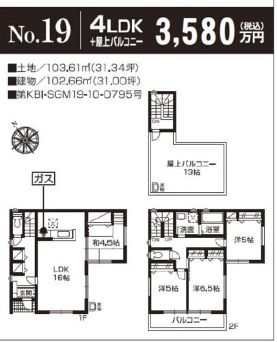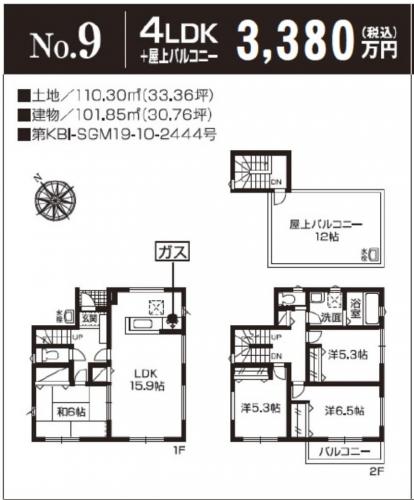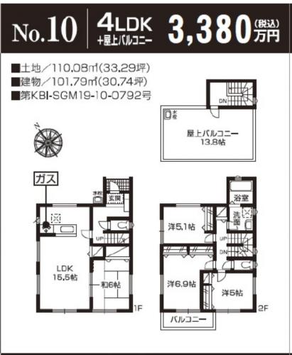 | 土地面積 | 103.61m2~121.78m2(実測) | 建物面積 | 101.01m2~104.32m2 |